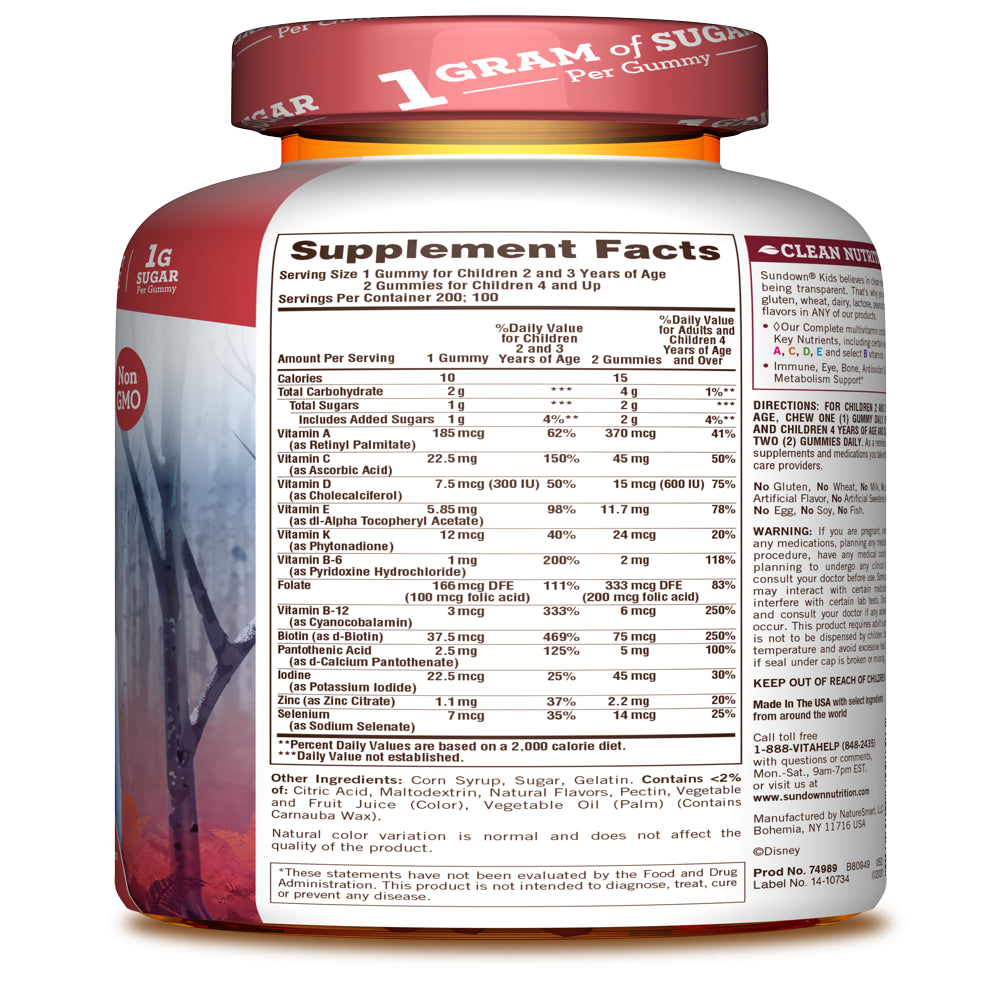- Sundown Kids Multivitamins, Frozen 2, Multi-Flavored Gummy Vitamins, 200 Ct: